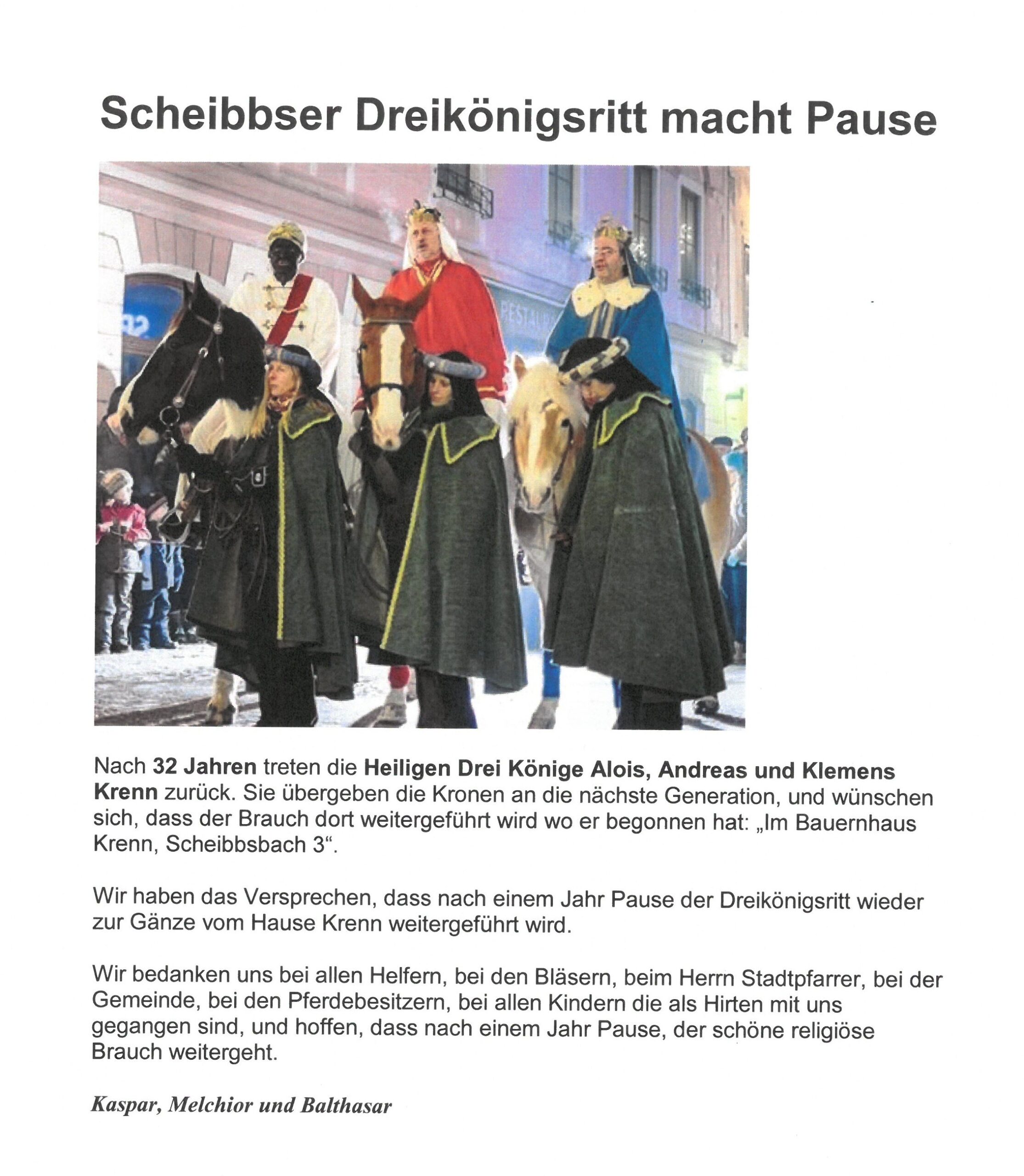 Sternsingen in Scheibbs: Die Königinnen und Könige sind auch heuer in Scheibbs wieder unterwegs! 29. und 30. Dezember sowie 2. und 3. Jänner. Bitte öffnen Sie Ihre Türen und unterstützen sie diese Aktion der katholischen Jungschar nach ihrem Ermessen. Am Samstag, den 3.1.26, sind die König:innen hier unterwegs: Lampelsberg Saffen linkes Erlaufufer Friedhofsiedlung Ruthesheimerstr. Türkenschuss...